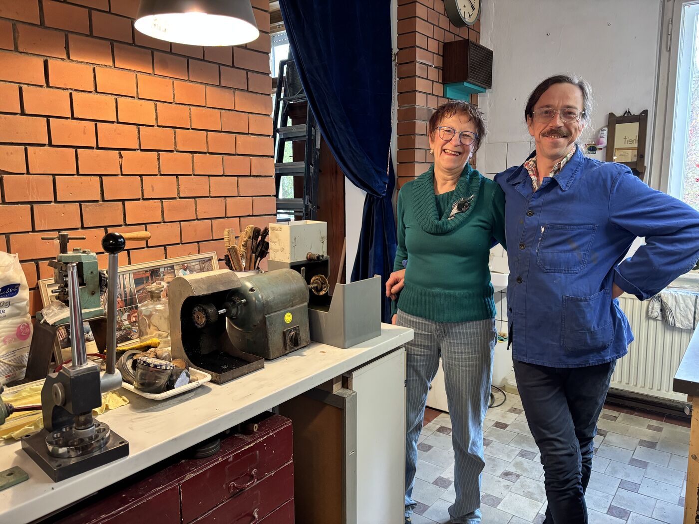 - Christine Burkhardt und ihr Nachfolger Hagen Wirsing in der Werkstatt.