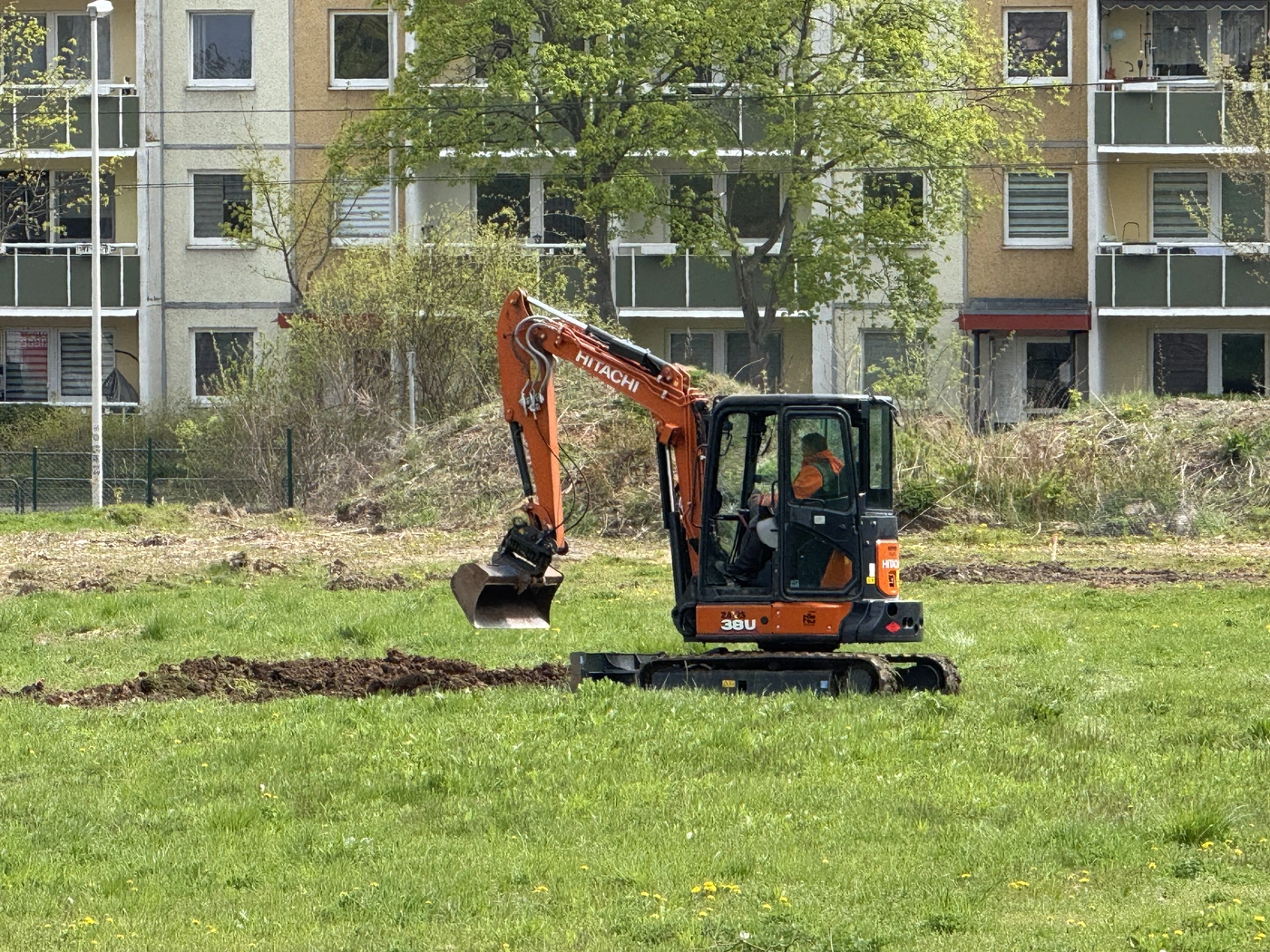 • Mutterseelenallein: Ein Minibaggerfahrer gräbt die Wiese auf.