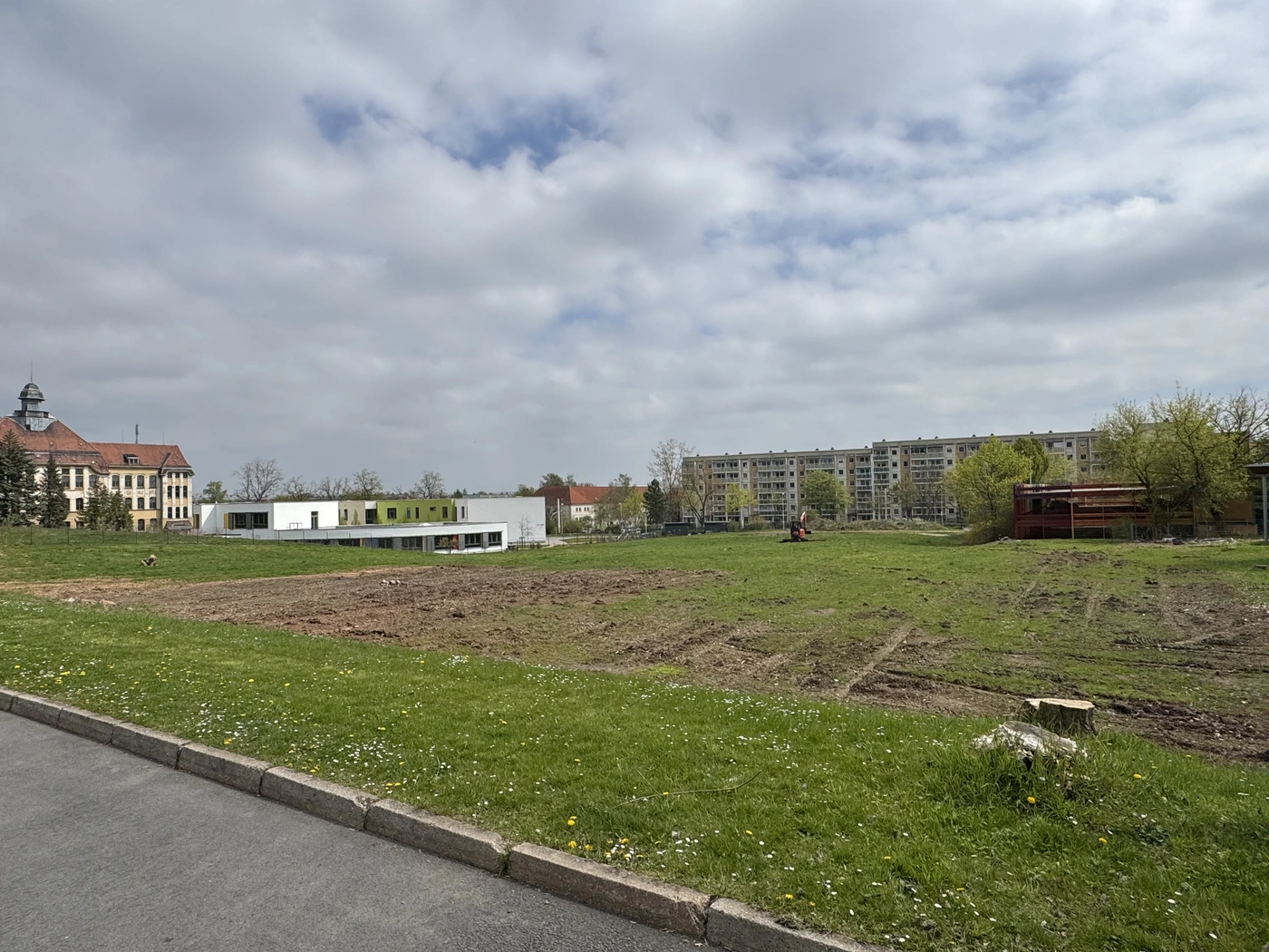 Der Ort für den Vertragsabschluss, die Neuplanitzer Sporthalle, wurde bewusst gewählt. Von dort aus schaut man auf das künftige Baufeld nebenan, auf dem im August die Arbeiter anrücken werden. Der ambitionierte Zeitplan gibt die Eröffnung im Dezember 2027 vor.