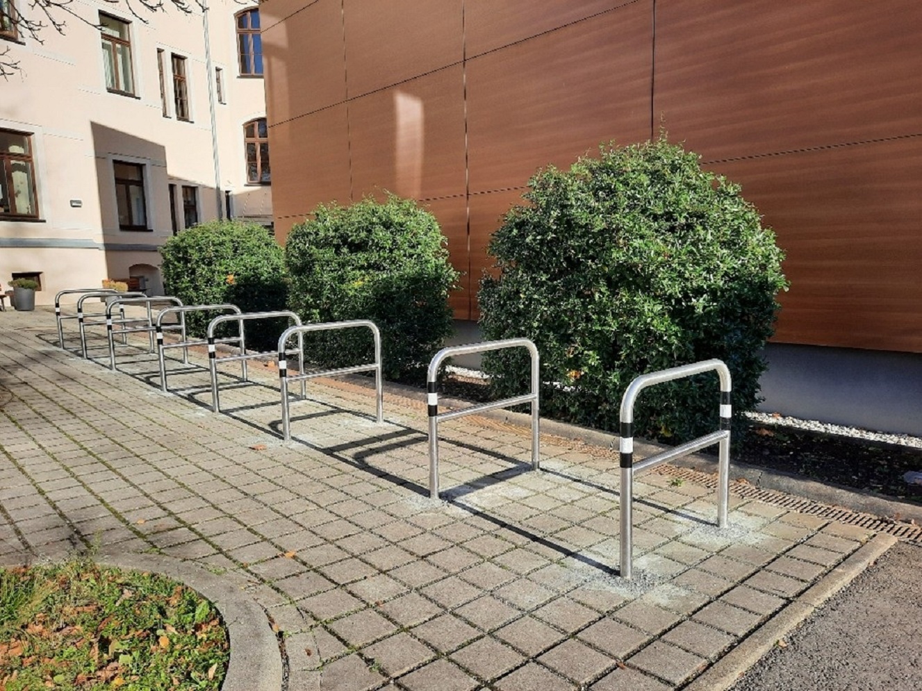 Chemnitz hat an der Städtischen Musikschule auf dem Kaßberg die Abstellmöglichkeiten für Fahrräder deutlich verbessert. Mitarbeiter des Tiefbauamtes installierten 18 Edelstahlbügel mit Querholm vor dem Gebäude an der Gerichtsstraße 1. Die neue Anlage bietet Platz für bis zu 36 Fahrräder und entspricht modernem Standard.