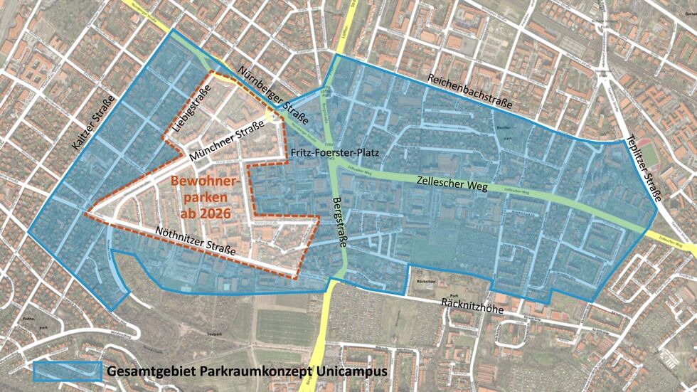 Die Stadt plant rund um den Uni-Campus in Dresden-Plauen ein neues Bewohnerparkgebiet. Es soll ab 2026 in dem Bereich zwischen Nürnberger Straße, Bergstraße, Nöthnitzer und Münchner Straße entstehen und die Parksituation für die Bewohner verbessern.