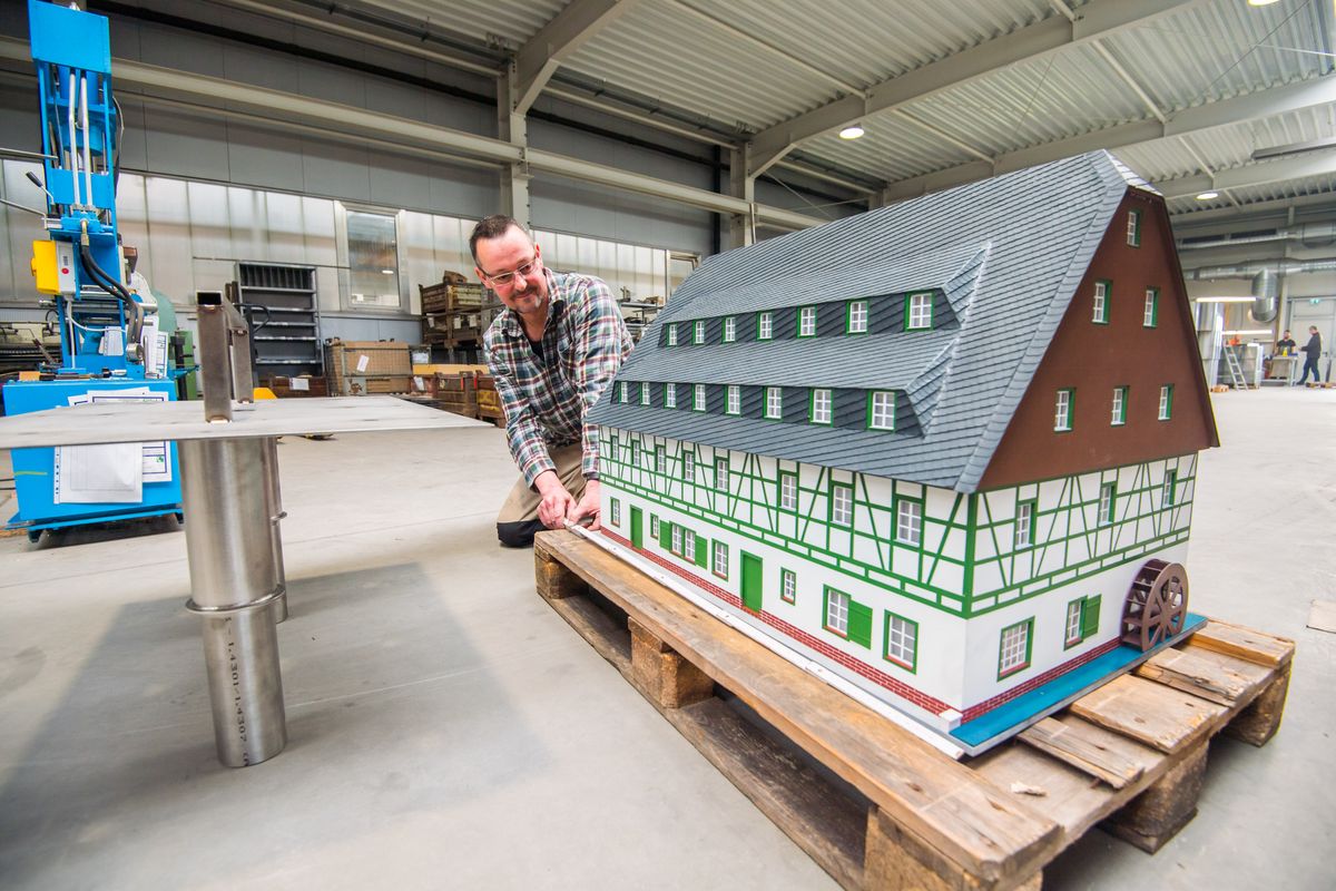 Das Modell der Mühle wird zum Schwibbogenfest am 26. November eingeweiht. Ein Häuschen soll noch dazu kommen, die ehemalige Gaststätte „Linde“. Dann ist das Neukirchner Lichterdorf komplett.