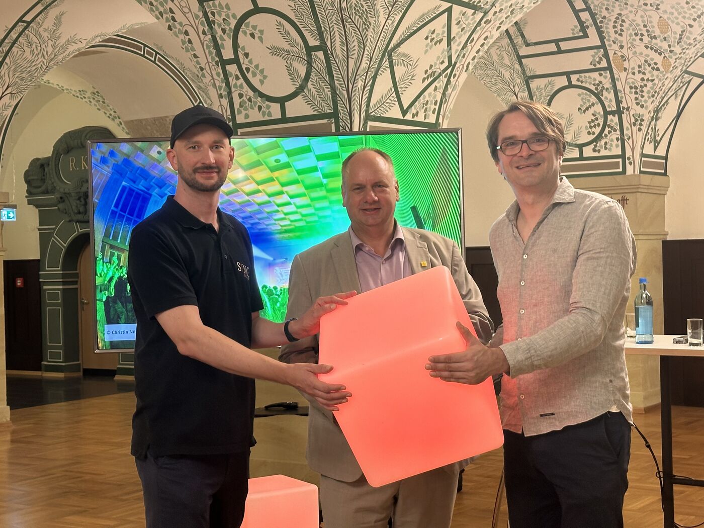 - Oberbürgermeister Dirk Hilbert, Geschäftsführer der Veranstaltungsagentur DNRG-MGMT Marco Benitz und DJ Jake Dile