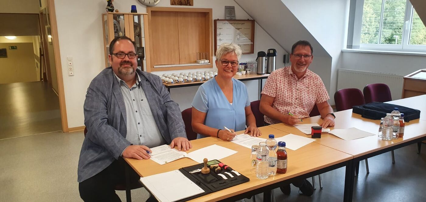 Bürgermeister unterzeichnen Kooperationsvertrag.