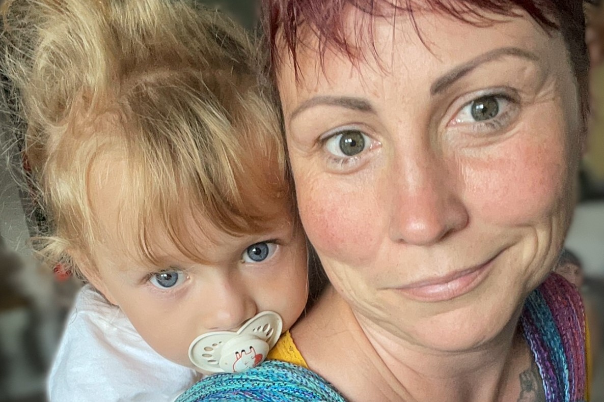 Die vierjährige Eleanor mit ihrer Mutter Kristina.