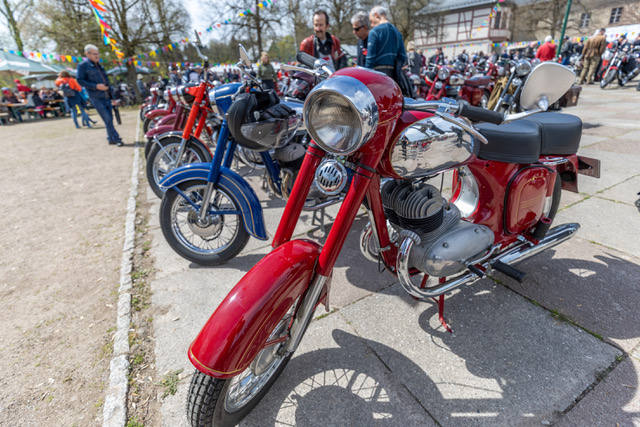 Historische Jawa-Motorräder gab es in verschiedensten Ausführungen ebenfalls am Mai-Feiertag in Rodewisch auf der Schlossinsel zu sehen. 250 an der Zahl waren es, das Älteste stammte aus dem Jahr 1948.