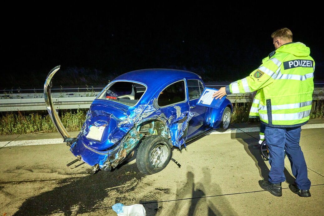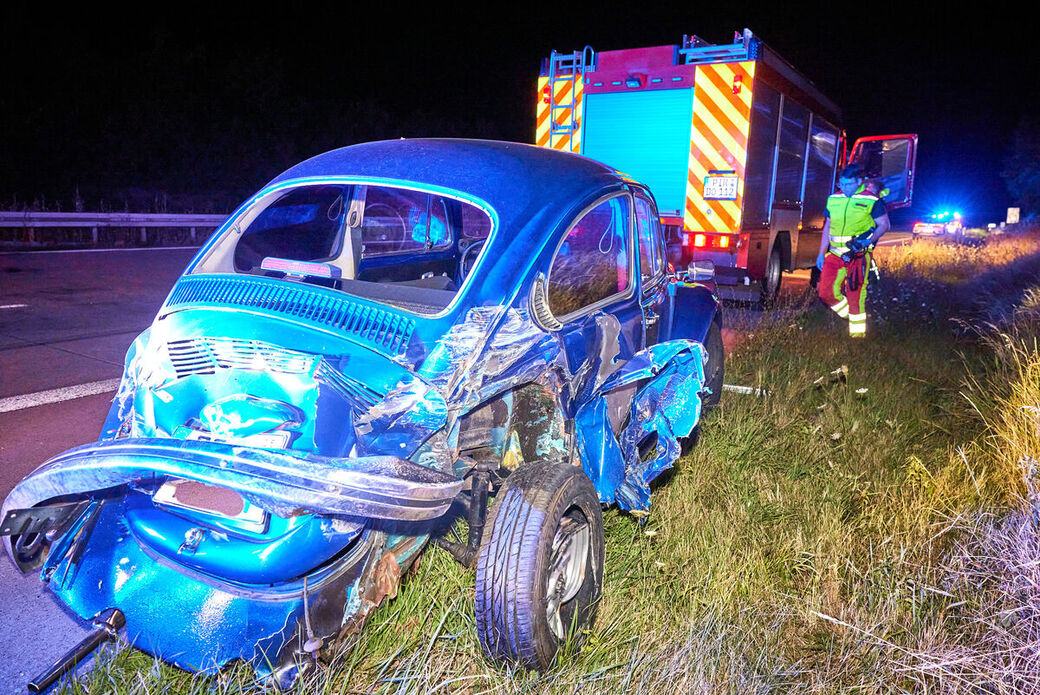Am späten Samstagabend ist ein Oldtimer VW Käfer auf der A17 verunglückt. Informationen unseres Reporters zufolge war die Fahrerin eines VW-Transporters zwischen Pirna und Heidenau Richtung Dresden unterwegs, als sie auf den vor ihr fahrenden Käfer auffuhr. Durch den Zusammenstoß kamen beide Fahrzeuge nach links und stießen gegen die Mittelleitplanke der Autobahn.