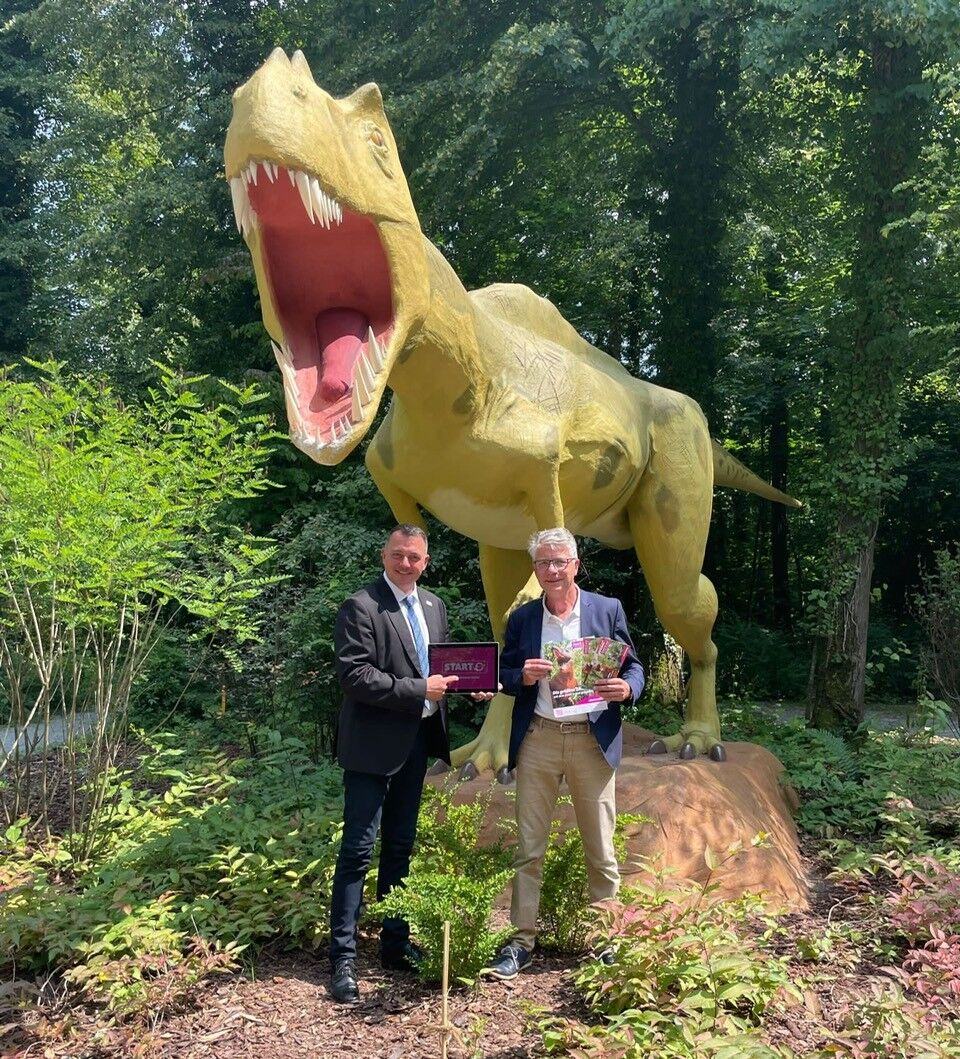- Der Bautzener Landrat Udo Witschas (l.) und der Geschäftsführer der Bautzener Betriebs- und Beteiligungsgesellschaft Volker Bartko haben den offizielenn Startschuss für den "famil-o-mat" gegeben.