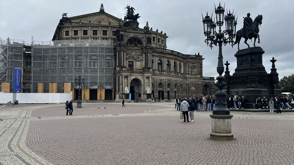 Die Semperoper erhält in der kommenden Woche auf rund 40 Metern neue Sandsteinsockel. Sie sind der letzte Abschnitt in den seit 2016 andauernden Sanierungsarbeiten an der Außenfassade. Denn der lärmende Abbruch des alten Sockels war immer nur in der Spielpause im Sommer möglich.