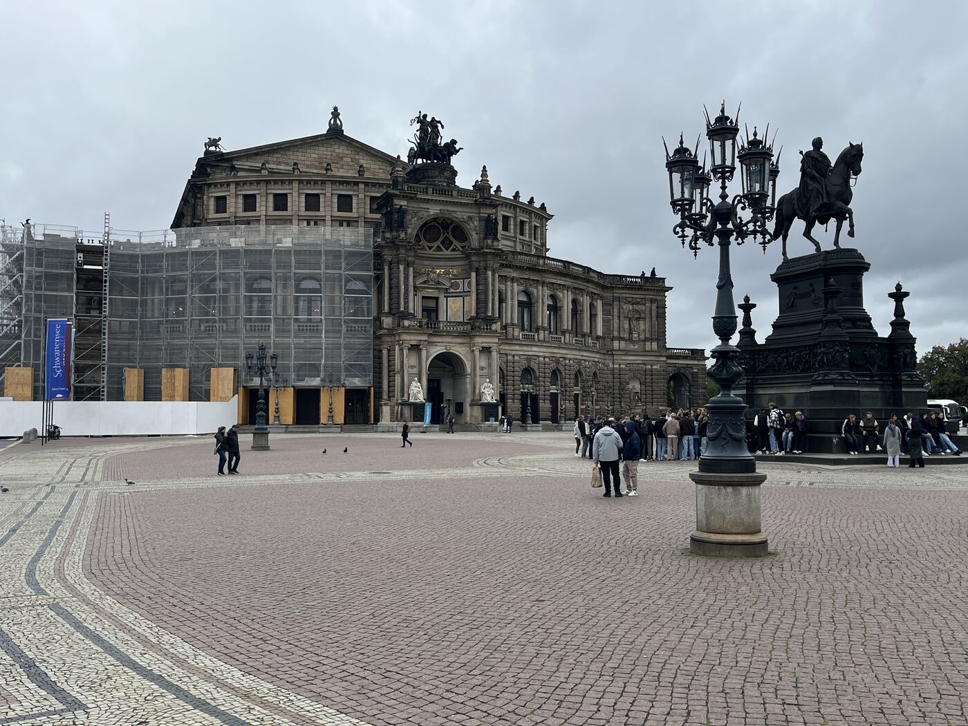 Die Oper ist an der Seite Richtung Elbe mit Bauzäunen versperrt