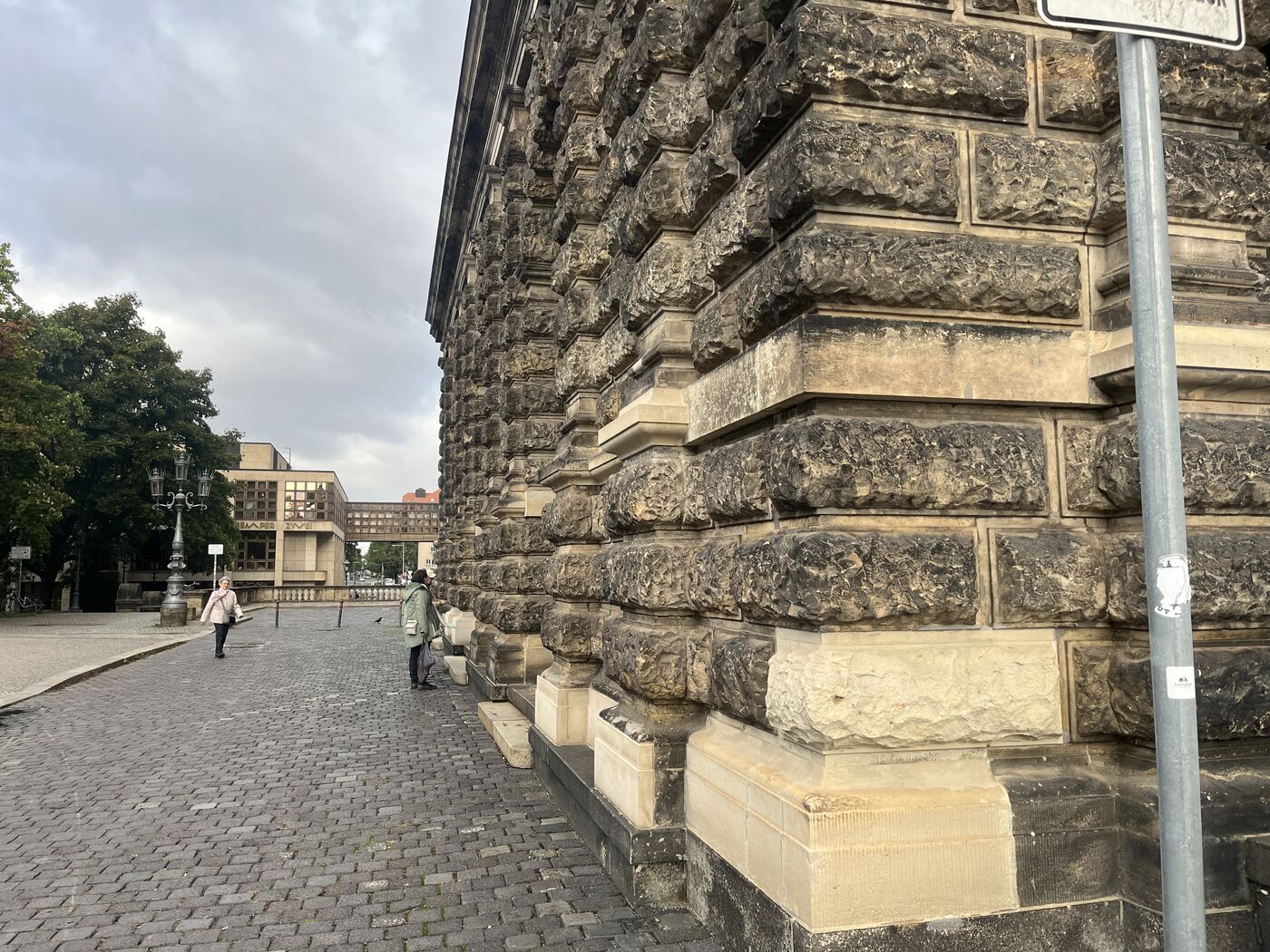 Laute Presslufthämmer lösten den alten, verwitterten Sandstein. Bevor der neue Postaer Sandstein – übrigens der gleiche wie beim Bau der Oper 1878 - angebracht werden kann, wird eine Bitumenschicht zur Abdichtung sowie Hartschaumplatten zur Dämmung angebracht. Die Sockelarbeiten sollen Mitte November abgeschlossen sein - und damit die Gesamtsanierung der Außenfassade. Das denkmalgeschützte Gebäude muss natürlich weiter gepflegt und erhalten werden. Dazu hatte der Freistaat im letzten Doppelhaushalt 7,4 Mio. Euro und im aktuellen 9,3 Mio. Euro eingestellt (inklusive Theaterwerkstätten).