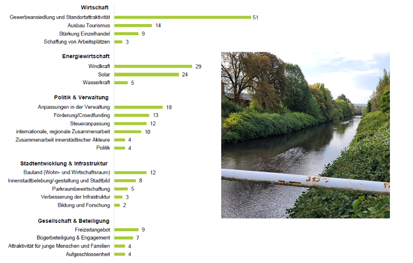 Wichtig ist vielen Ostritzern, dass ihre Stadt finanziell wieder besser dasteht. Mehr Einnahmen könnten durch mehr Gewerbe in der Stadt erzielt werden, sind gut 40 Prozent überzeugt. Das setze attraktive Standortbedingungen voraus. Gefragt wurde auch nach den Wünschen der Ostritzer. Dazu gehört eine weitere Fußgängerbrücke über die Neiße, und zwar am Kloster. Die alte Steinbogenbrücke war am Ende des Zweiten Weltkrieges durch die Wehrmacht gesprengt worden. 27 Prozent wollen, dass die Brücke wieder errichtet wird.