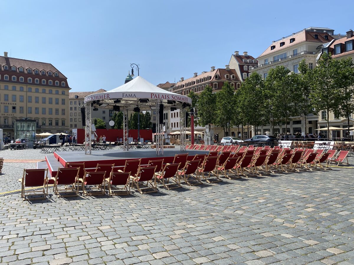 - Auf dem Neumarkt wird der Palais Sommer aufgebaut.