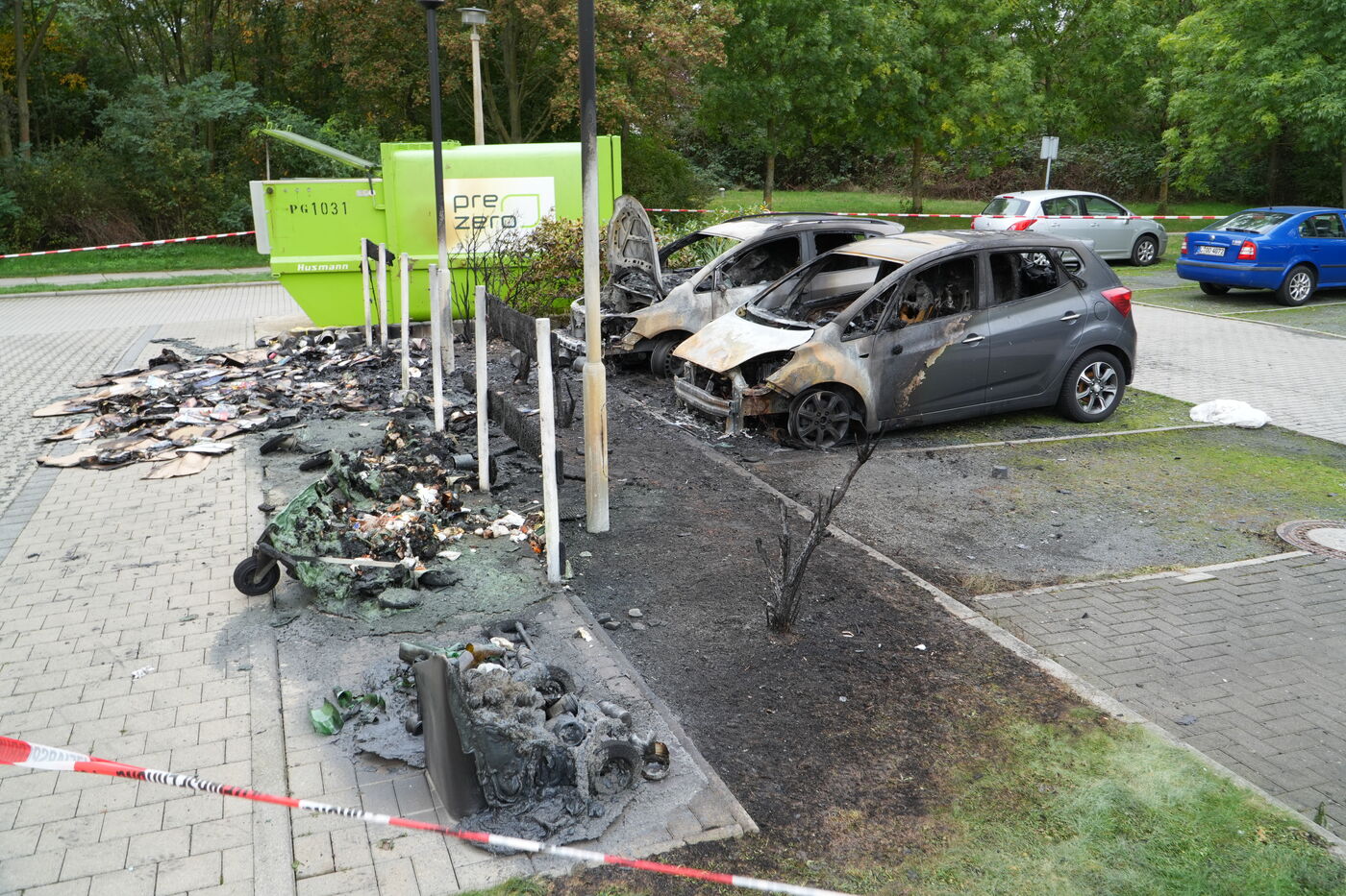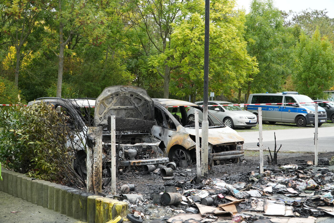 Auf dem Parkplatz fackelten mehrere Autos ab.