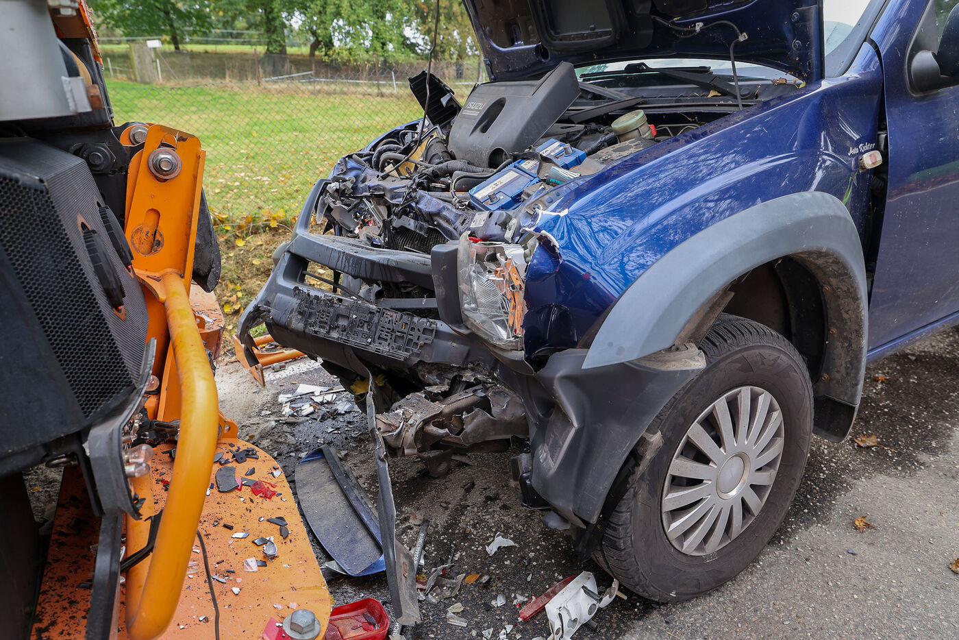 In Oberwiera hat es am Dienstag (13:40 Uhr) einen schweren Verkehrsunfall gegeben. Nach ersten Informationen war ein Pickup ungebremst auf einen Lkw der Straßenmeisterei aufgefahren. Der Unimog war gerade dabei, die Fahrbahnränder zu mähen.