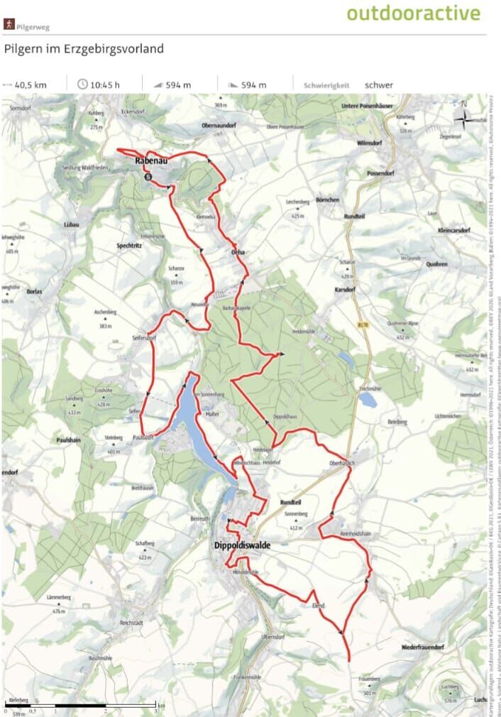 Im Landkreise Sächsische Schweiz-Osterzgebirge gibt es einen neuen Pilgerrundweg. Samstagnachmittag 14 Uhrwird er feierlich im Waldstadion Rabenau/Oelsa, eingeweiht. Entlang der 40 Kilometer langen Strecke von Rabenau über Seifersdorf, Malter, Dippoldiswalde, Elend, Reinholdshain und Oelsa gibt es jede Menge zu entdecken. 23 historische Wegemale, darunter 6 Kirchen können erkundet werden. An jeder Station gibt es Denkanstöße – so genanntes Gedankenfutter - damit die Pilger vorankommen: mit den Beinen und mit der Seele, so Doreen Kadner vom Fremdenverkehrsamt Rabenau.