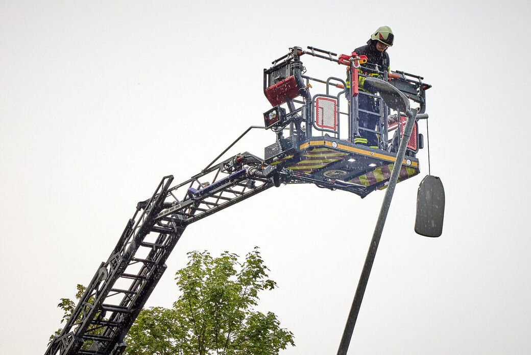 - Die Feuerwehr legt den Laternenmast um.
