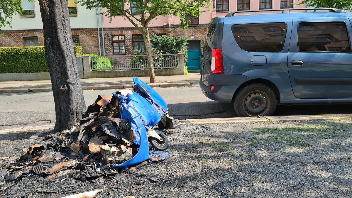 - Von diesem Müllcontainer auf der Lassallestraße ist nicht mehr viel übrig.