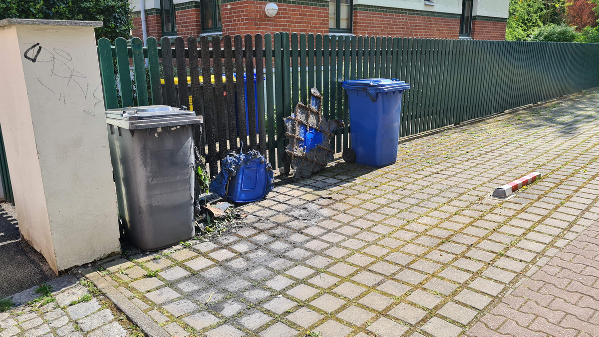 - Die Reste einer Tonne auf der Walther-Rathenau-Straße.