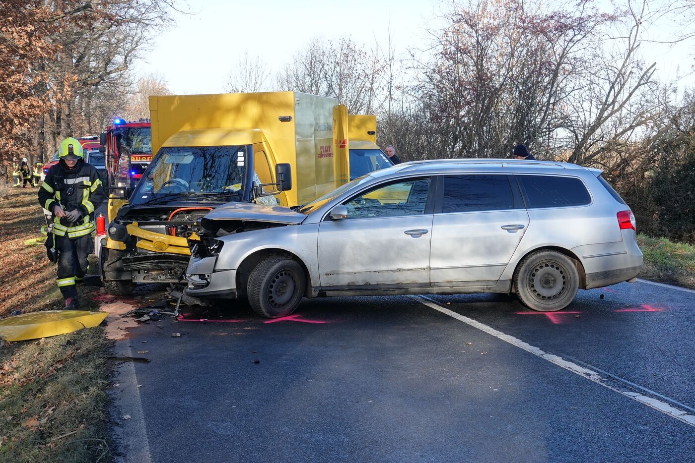 In Klipphausen ist am Montagmorgen ein Postauto mit einem entgegenkommenden Pkw frontal zusammengestoßen. Laut Polizei war auf Höhe des Gewerbegebiets ein Fahrzeug aus bislang ungeklärter Ursache von der Fahrbahn abgekommen, in den Gegenverkehr geraten und dort mit dem anderen Wagen kollidiert.