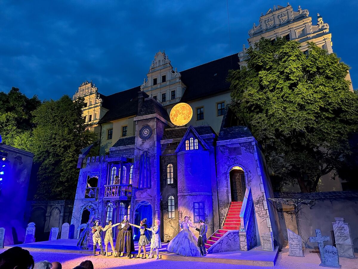 Im Hof der Bautzener Ortenburg ist am Donnerstagabend der Startschuss für den 27. Bautzener Theatersommer gefallen. Knapp 1.000 Zuschauer haben die Premiere für das neue Stück „The Addams Family“ gesehen.
