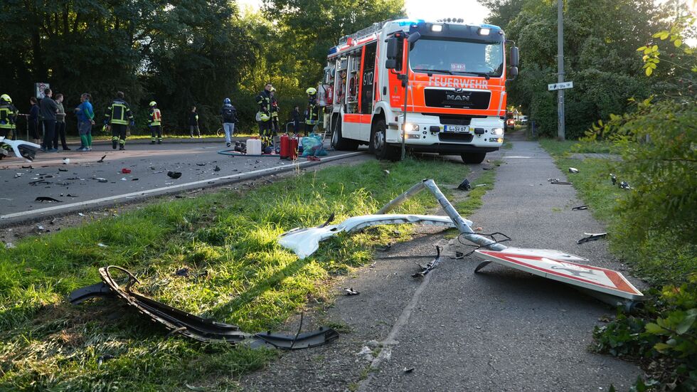 Großes Trümmerfeld nach Crash auf Probstheidaer Straße - 5 Verletzte