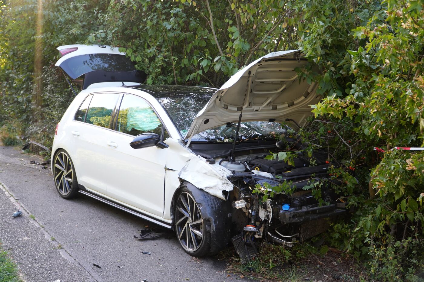 Ein beteiligter Wagen krachte bei dem Unfall in eine Hecke.