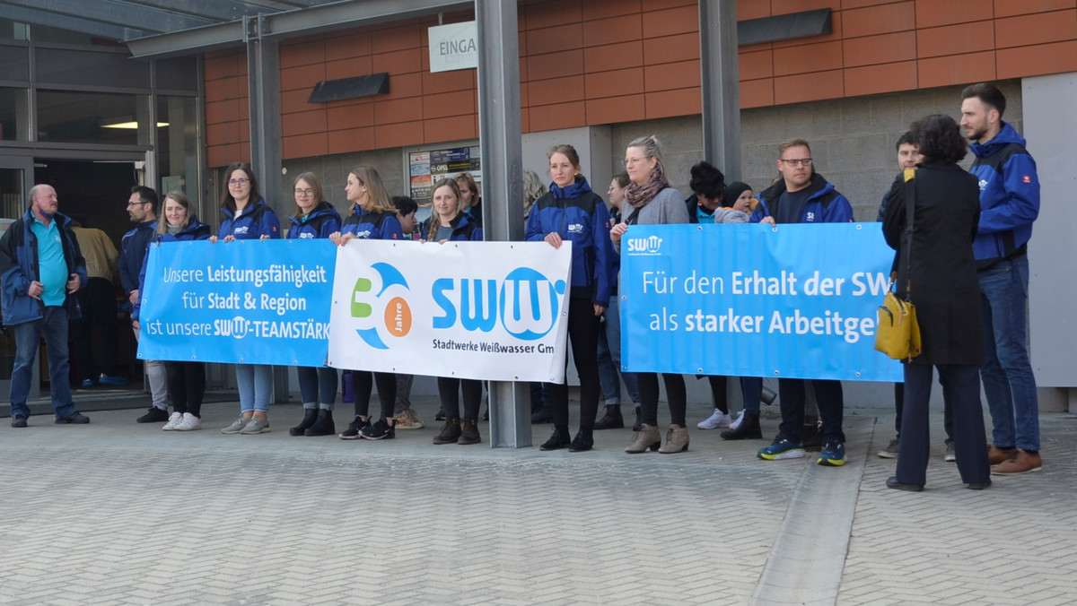 Es geht in Weißwasser um die Rekommunalisierung der Wasserversorgung. Der Vertrag mit Stadtwerkebetreiber Veolia läuft Ende dieses Jahres aus. Es müsste europaweit neue ausgeschrieben werden - Ausgang ungewiss. Berater sehen darin ein Risiko. Würde sich Weißwasser dem Zweckverband anschließen, bliebe die Versorgung komplett in kommunaler Hand. Dagegen fürchten Mitarbeiter der Stadtwerke um ihre Jobs. Sie protestierten vor dem Stadtrat gegen eine Abspaltung. Rund 40 Arbeitsplätze stehen nach Angaben von Stadtwerke-Geschäftsführerin Katrin Bartsch auf dem Spiel.