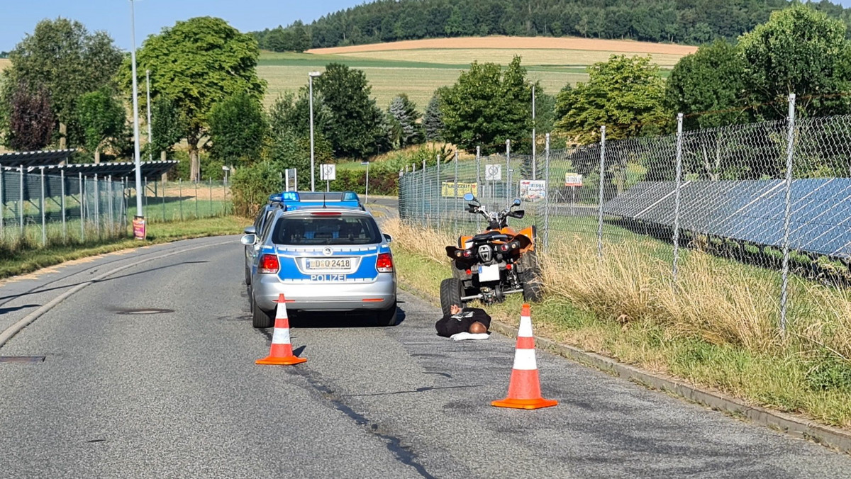 Ein Tscheche mit einem gestohlenen Quad ist in Ebersbach gestellt worden. Polizisten nahmen den 48-Jährigen fest. Das Quad war in Löbau gestohlen worden. Der Tatverdächtige kam einer Polizeistreife auf der S 148 entgegen. Die Besatzung wendete und nahm die Verfolgung auf. Auf der Marie-Curie-Straße konnten sie das Gefährt stoppen. Dabei schrammte das Polizeiauto das Quad. Der Quad-Fahrer hatte keine Fahrerlaubnis. Er stand unter Drogen.