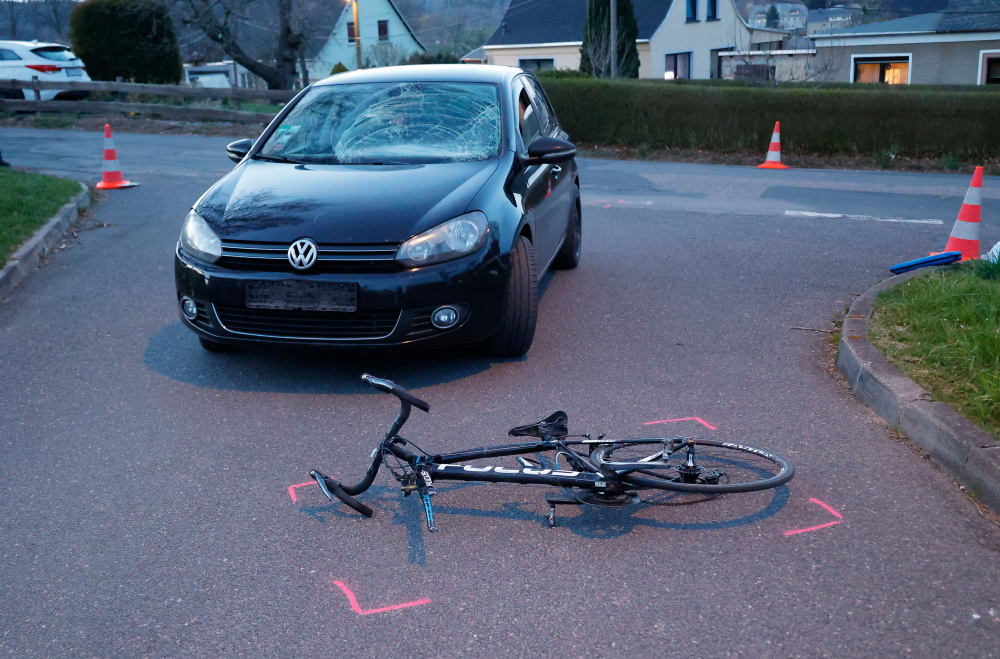 In Hohenfichte bei Augustusburg ist am Montagabend ein Radfahrer bei einem Unfall schwer verletzt worden. Ein Autofahrer bog auf der Schellenberger Straße nach links ab. Der entgegenkommende Radfahrer krachte in den VW und stürzte.