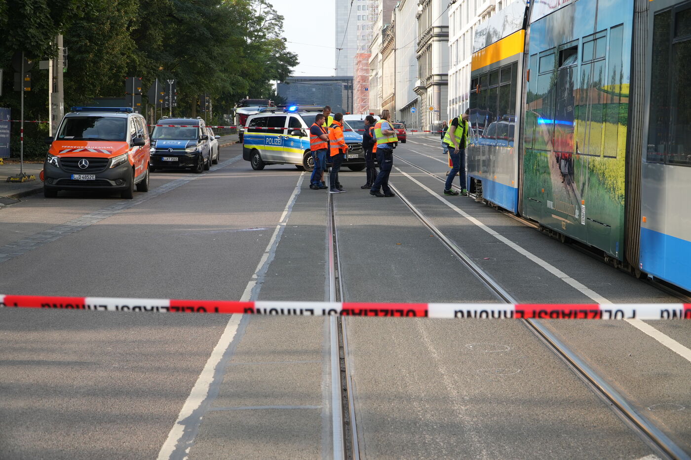 Schlimmer Unfall am Dienstagmorgen auf der Goethestraße gegenüber vom Leipziger Hauptbahnhof. Laut Polizei ist dort kurz vor halb Sieben eine Fahrradfahrerrin (45), die in Richtung Bahnhof unterwegs war, „irgendwie über die MIttellinie gekommen“ und mit einer entgegenkommenden Straßenbahn zusammengestoßen. Möglicherweise wollte sie in die Richard-Wagner-Straße abbiegen.