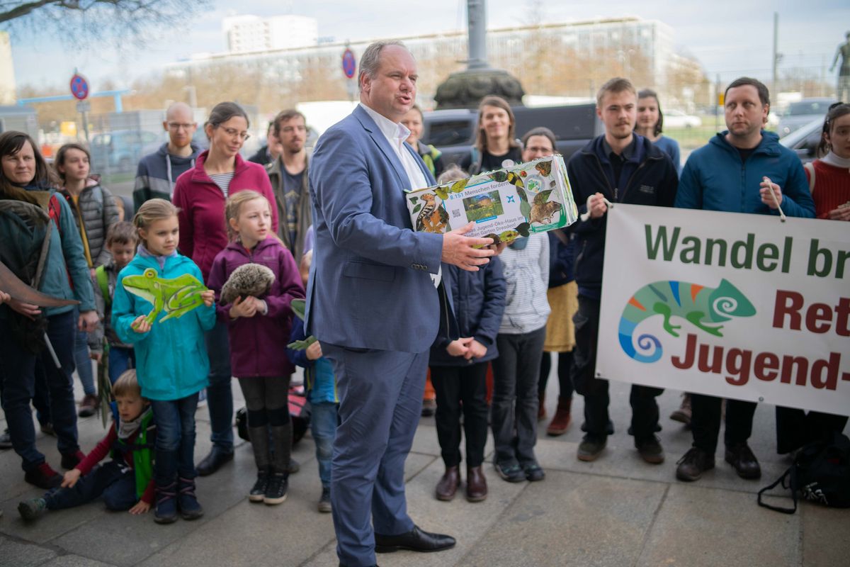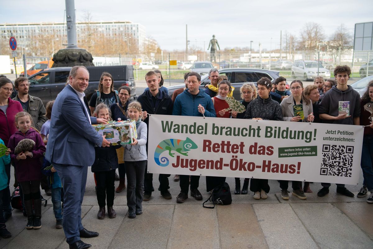 Dresdens Oberbürgermeister Dirk Hilbert hat am Mittwochnachmittag eine Petition zur Rettung des Jugendökohauses entgegengenommen. Zahlreiche Kinder und Jugendliche aus der Arbeitsgemeinschaft des Ökohauses übergaben diese gemeinsam mit der Vorstandvorsitzenden Helga Siemens und dem Vorstandsmitglied Katrin Schneider. Mehr als 8.000 Menschen hatten die Petition innerhalb kürzester Zeit unterschrieben.