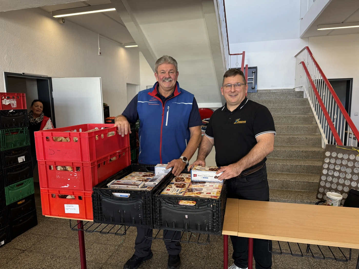 - Trotz aller Sorgen mit Freude bei der Arbeit: Tafelchef Ralf Hutschenreuter (l.) und Jens Juraschka vom Träger Gemeinsam Ziele erreichen
