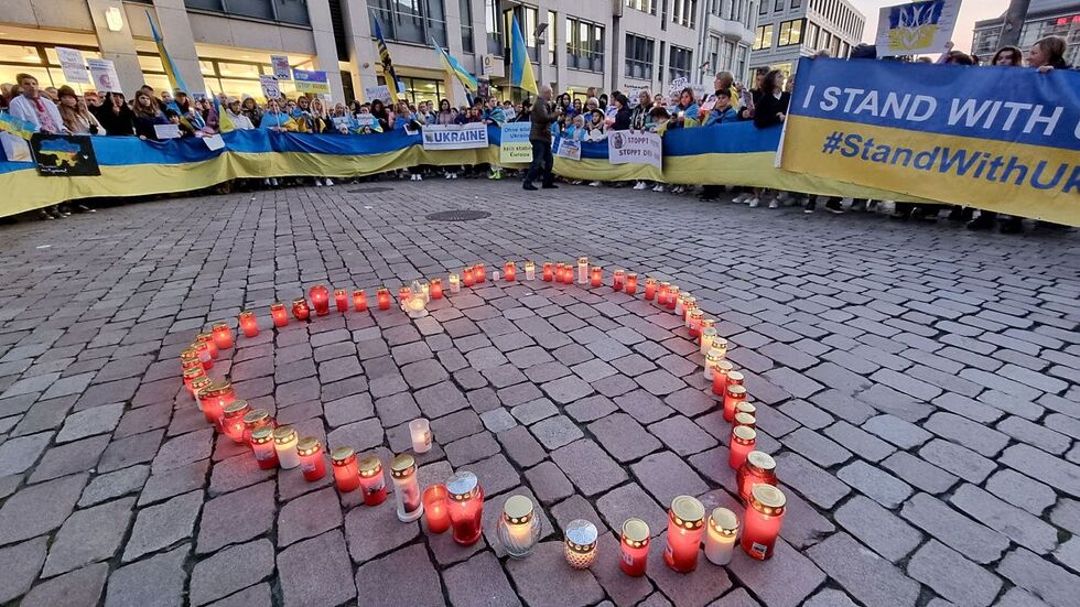 Rund 100 Teilnehmer bei Ukraine-Demo vorm Rathaus