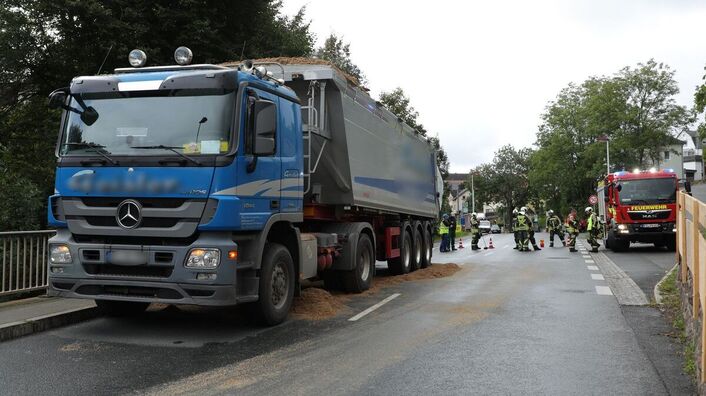 Auf der B173 in Mohorn hat ein Verkehrsunfall am Dienstagnachmittag für Chaos gesorgt. Ein Trucker war mit einem Kleinwagen zusammengestoßen. Bei der Vollbremsung verteilte sich der Inhalt des Lasters auf der Fahrbahn. Dabei handelte es sich um Treber, ein Nebenprodukt, dass bei der Herstellung von Braumalz anfällt.