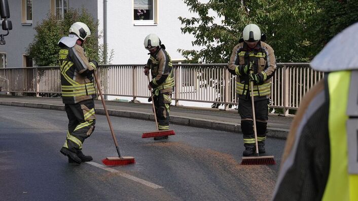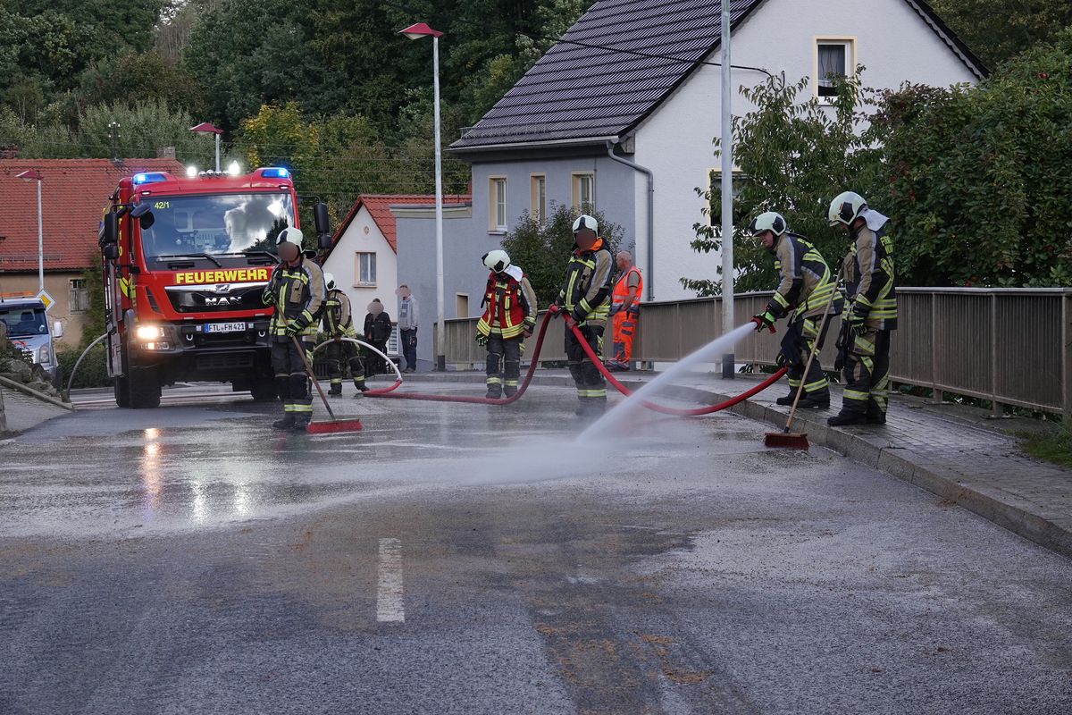 Die Feuerwehr bei den Reinigungsarbeiten.