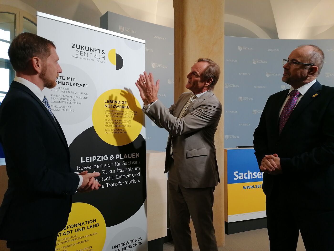 Sachsen sieht sich wegen seiner Geschichte im Herbst 1989 prädestiniert für den Standort eines geplanten „Zukunftszentrums“ zur Deutschen Einheit und Europäischen Transformation. „Sachsen ist das Land der Friedlichen Revolution, von hier aus begann dieser Prozess, der dann in die Deutsche Einheit und die Europäische Einigung gemündet hat“, sagte Ministerpräsident Michael Kretschmer (CDU) am Mittwoch in Dresden. Die gemeinsame Bewerbung von Leipzig als „Motor dieser Entwicklung“ und Plauen sei eine besondere Kraft im Wettbewerb. Dass der Umbruch in Sachsen begann, „darf nicht in Vergessenheit geraten“.