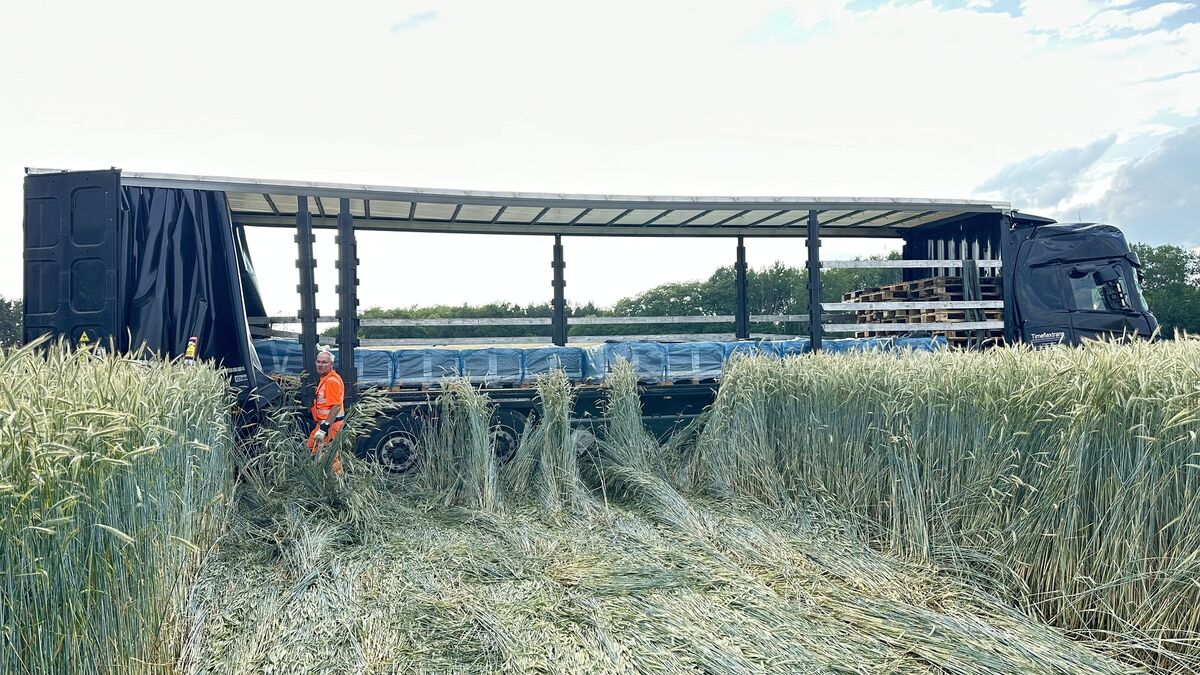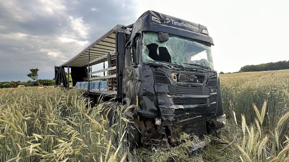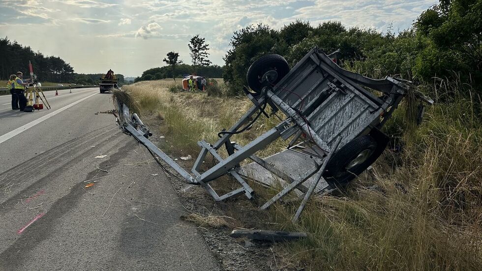 Der 35-Jährige war gerade dabei, einen Schilderwagen an einen Kleintransporter anzuhängen, als der Lkw auf den Standstreifen fuhr. Durch die Wucht des Aufpralls wurde der Wagen zerstört und der Transporter schwer beschädigt. Der Lkw durchbrach anschließend einen Wildzaun und rollte auf ein Feld. Am Steuer saß ein 53-jähriger Spanier. Die Unfallursache ist noch unklar.