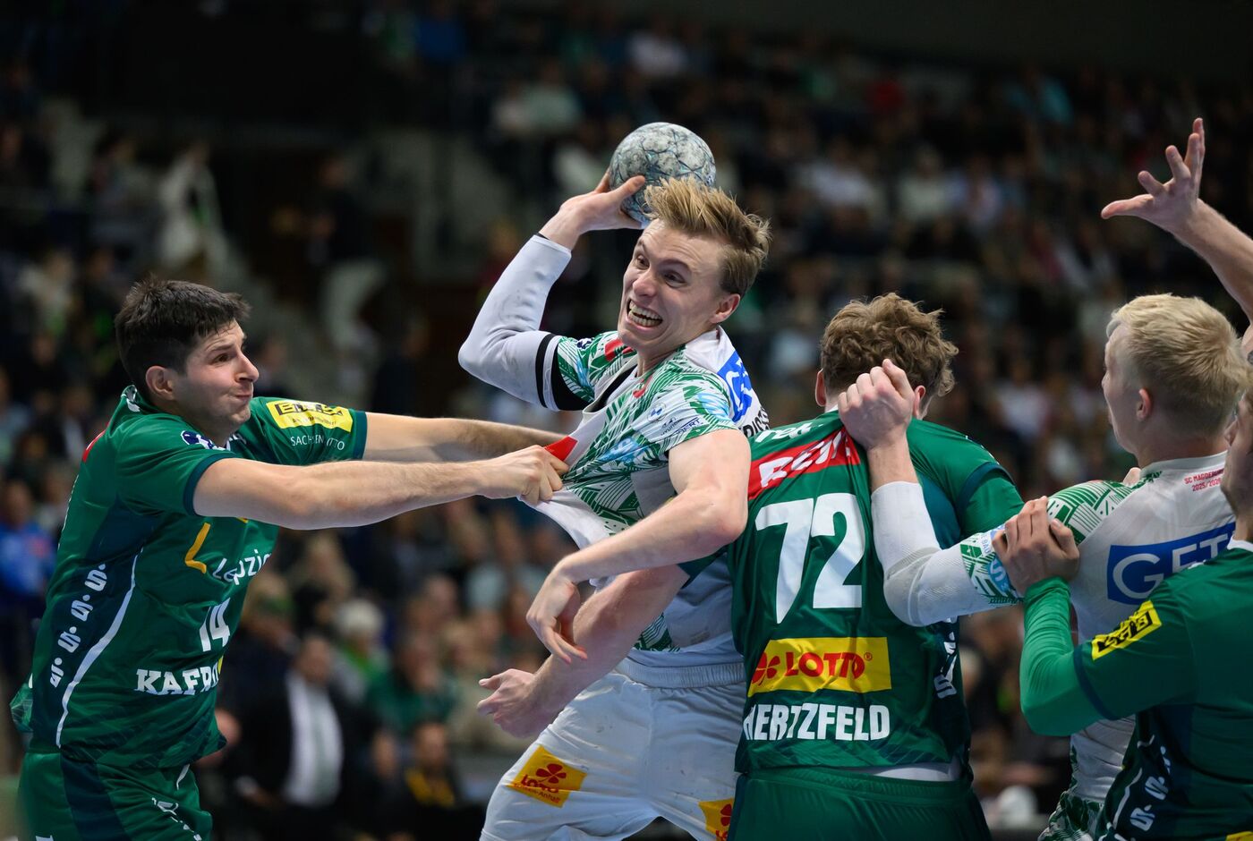 Gisli Kristjansson (hier am Ball) und die Bundesliga-Handballer des SC Magdeburg ließen dem SC DHfK Leipzig nicht den Hauch einer Chance.