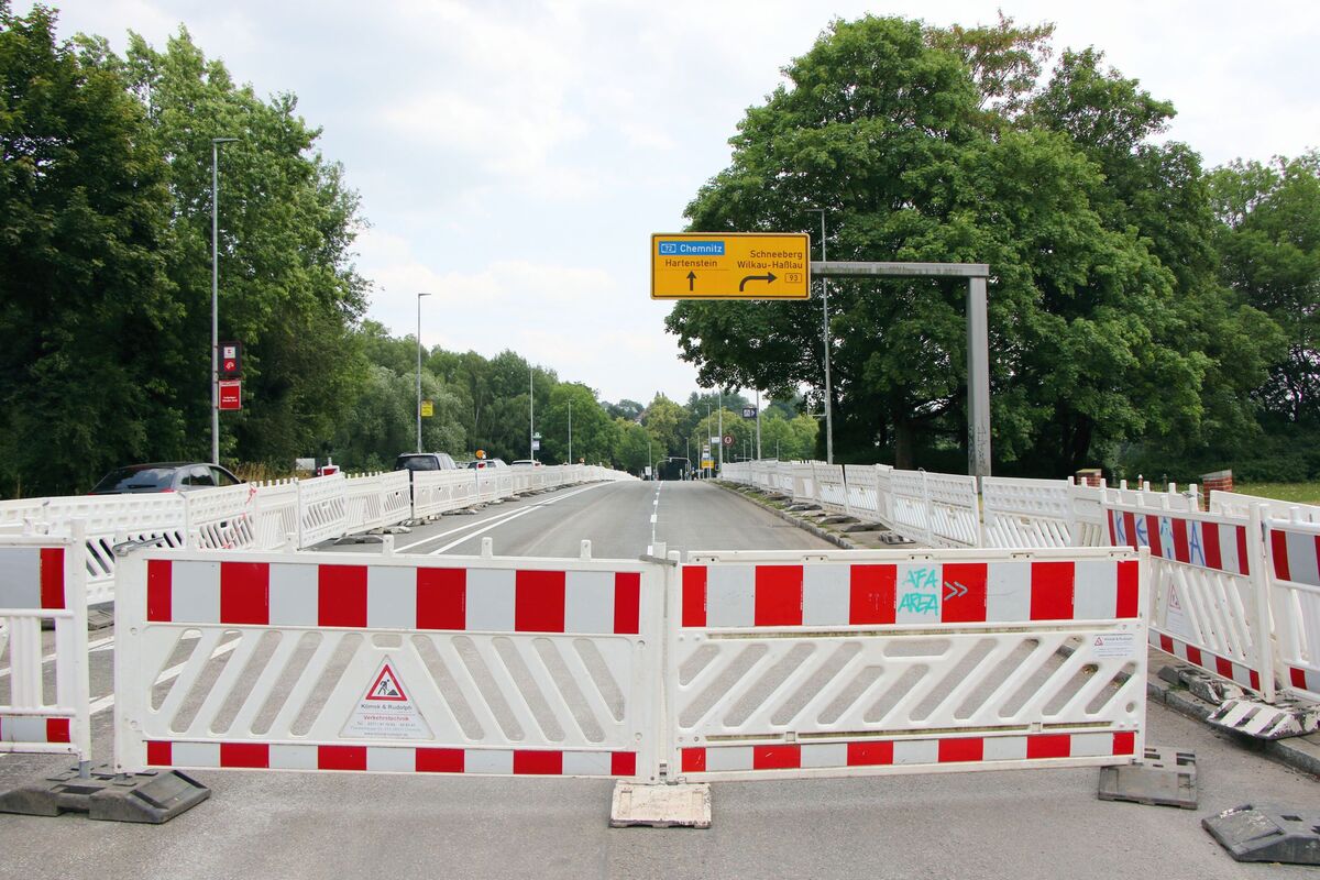 Seit Mai wurde auf der Brücke und am Knoten Muldestraße/ Wildenfelser Straße eine neue Asphaltschicht aufgebracht - auf einer Fläche von knapp 5.000 Quadratmetern. Auch die Gehwege wurden erneuert.