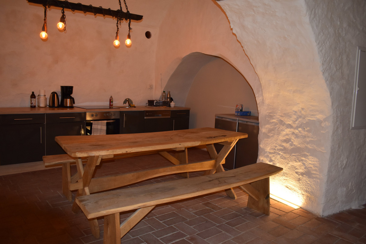 - Restauriertes Gewölbe der spätmittelalterlichen Burgküche.