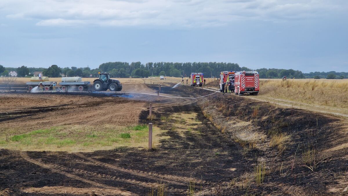 Schon wieder stand ein Feld im Landkreis Leipzig in Flammen. Im Bennewitzer Ortsteil Nepperwitz löste laut der Kreisfeuerwehr am Mittwochmittag vermutlich ein Funken von den Bahnschienen den Brand aus. Zahlreiche Feuerwehren kamen zum Einsatz, auch die Landwirte unterstützten. Wie groß der Brand war, konnte der Sprecher noch nicht sagen. Das Feuer ist mittlerweile gelöscht.