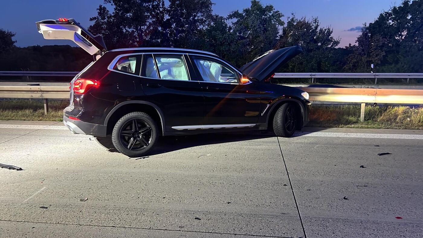 Schwarzer Kleinwagen flüchtet nach Crash auf A14