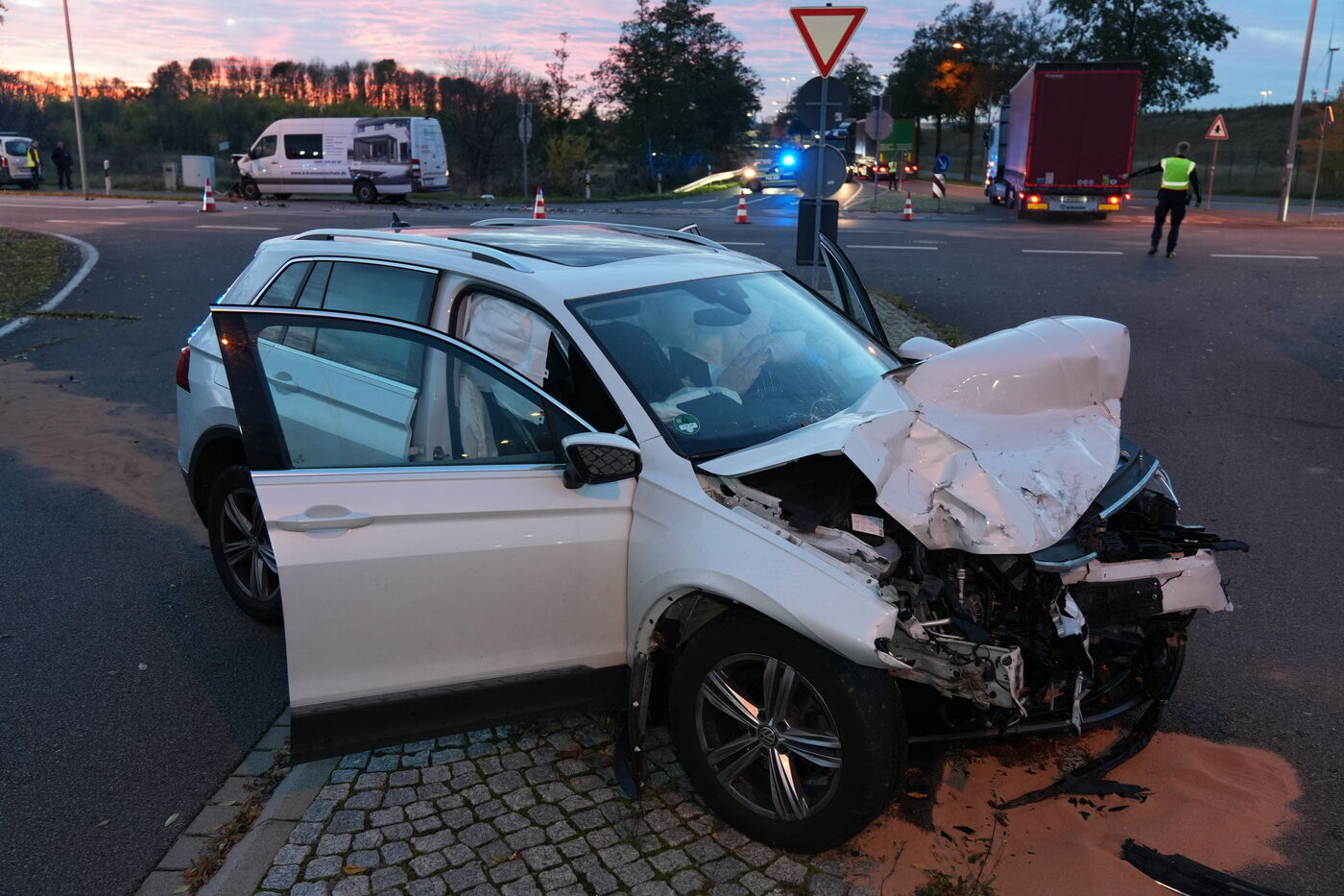 Der beteiligte SUV wurde schwer beschädigt, mehrere Airbags sind aufgegangen.