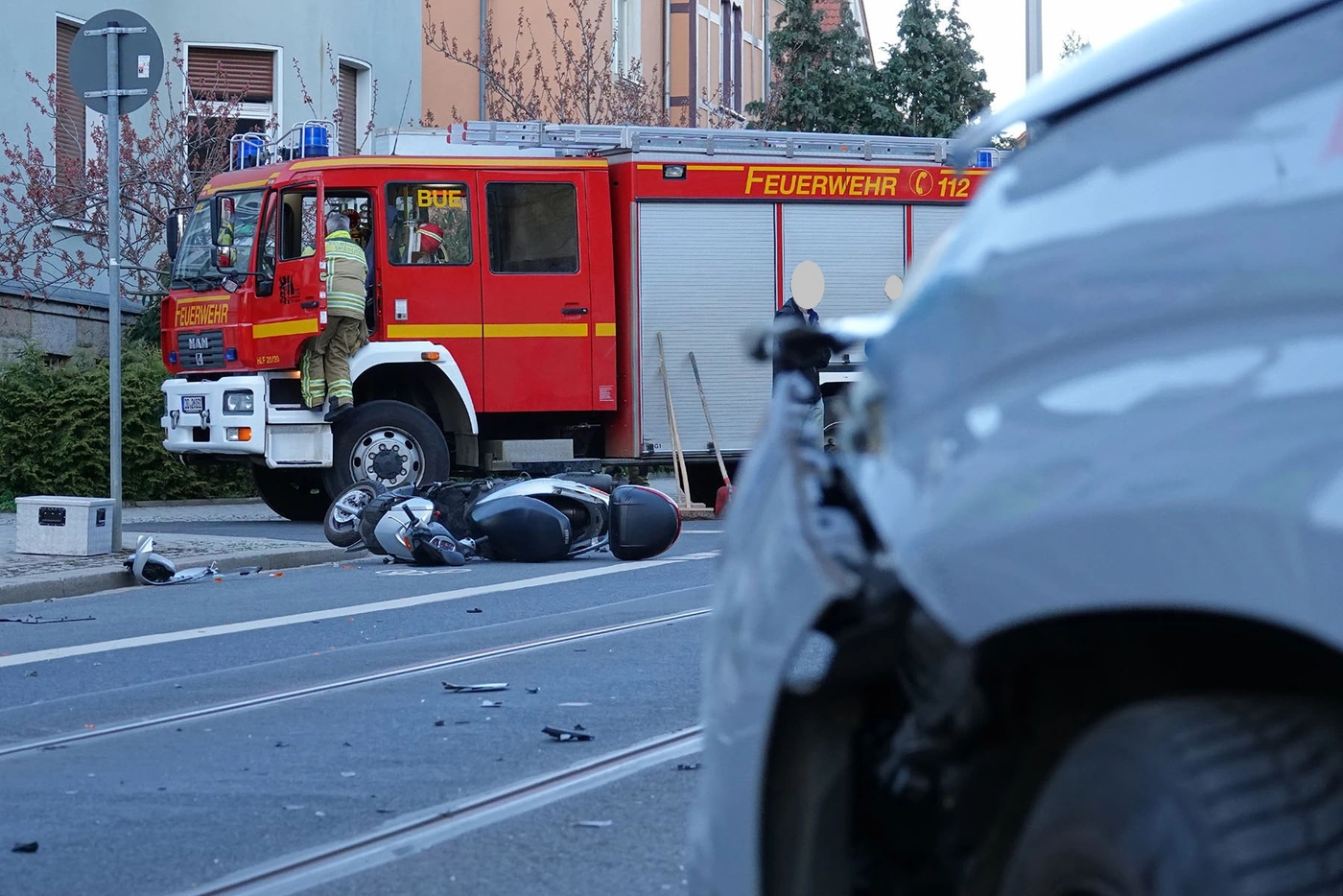 Beide Fahrer kamen ins Krankenhaus, der Rollerfahrer verletzte sich jedoch bei dem Zusammenstoß schwer. Die B 6 war wegen des Unfalls gestern Abend zeitweilig gesperrt. Die Straßenbahnlinie 11 war ebenfalls unterbrochen.