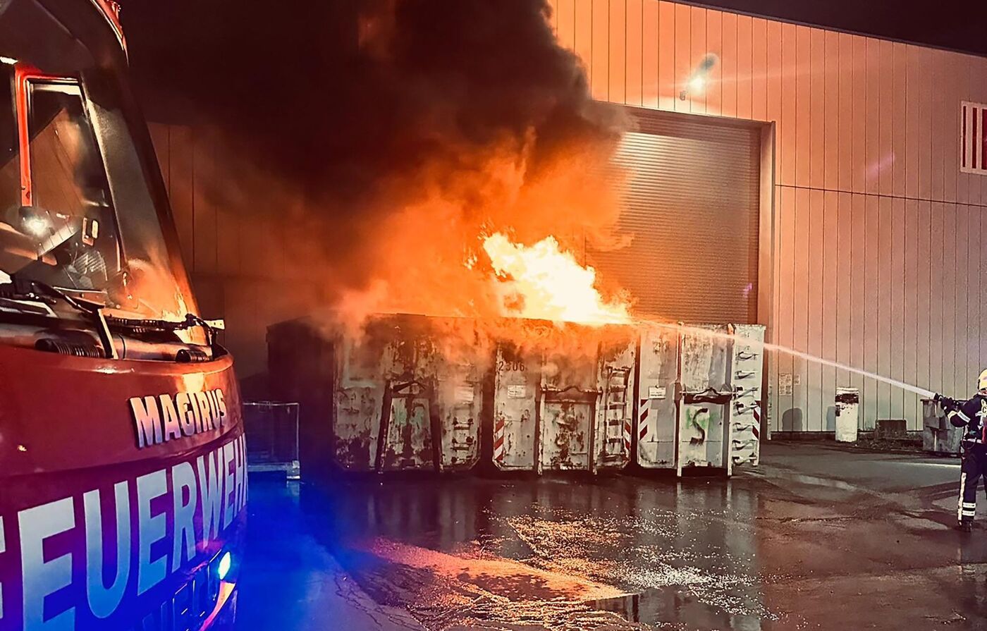 Nach Angaben der Polizei hatte sich in dem Container ein Akku selbst entzündet. Die Feuerwehr löschte die Flammen binnen einer Stunde. Ein Fremdverschulden wird ausgeschlossen.