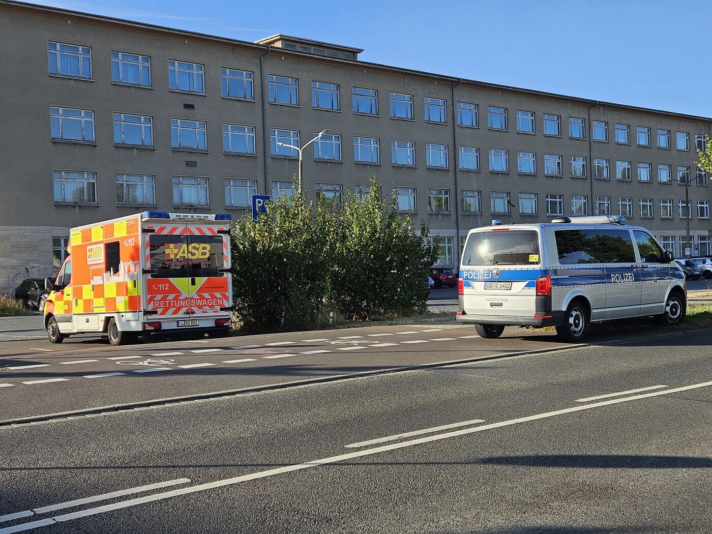 Hier ist der Unfall passiert: Rettungsfahrzeuge und Polizei auf der Torgauer Straße in Leipzig (nahe Bautzner)