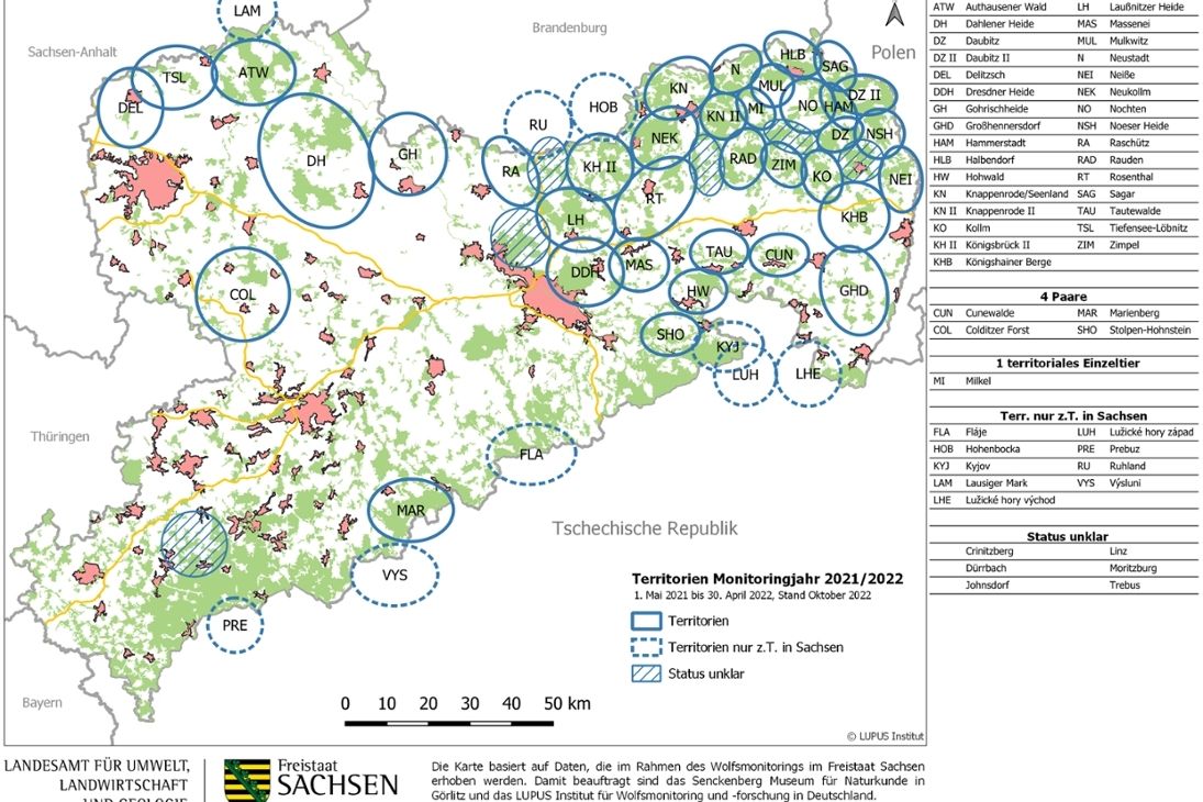 Im Untersuchungszeitraum wurden 74 Welpen in 26 Rudeln in Sachsen erfasst. Die Bilanz weist außerdem 17 tote Wölfe aus. 12 kamen bei Verkehrsunfällen ums Leben. Zwei wurden erschossen. Zum einen handelte es sich um eine Wölfin aus dem Elstraer Rudel. Ihr Kadaver wurde in der Dresdner Heide entdeckt. Zum anderen wurde bei Neustadt/Spree im sächsisch-brandenburgischen Grenzgebiet ein illegal getöteter Wolf gefunden.