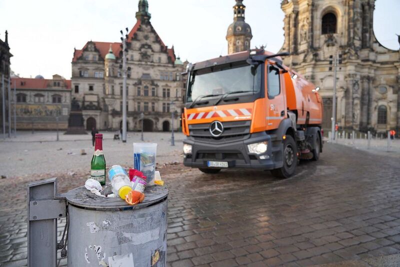 Silvester in Dresden: Temperaturrekord, brennende Autos und jede Menge Müll