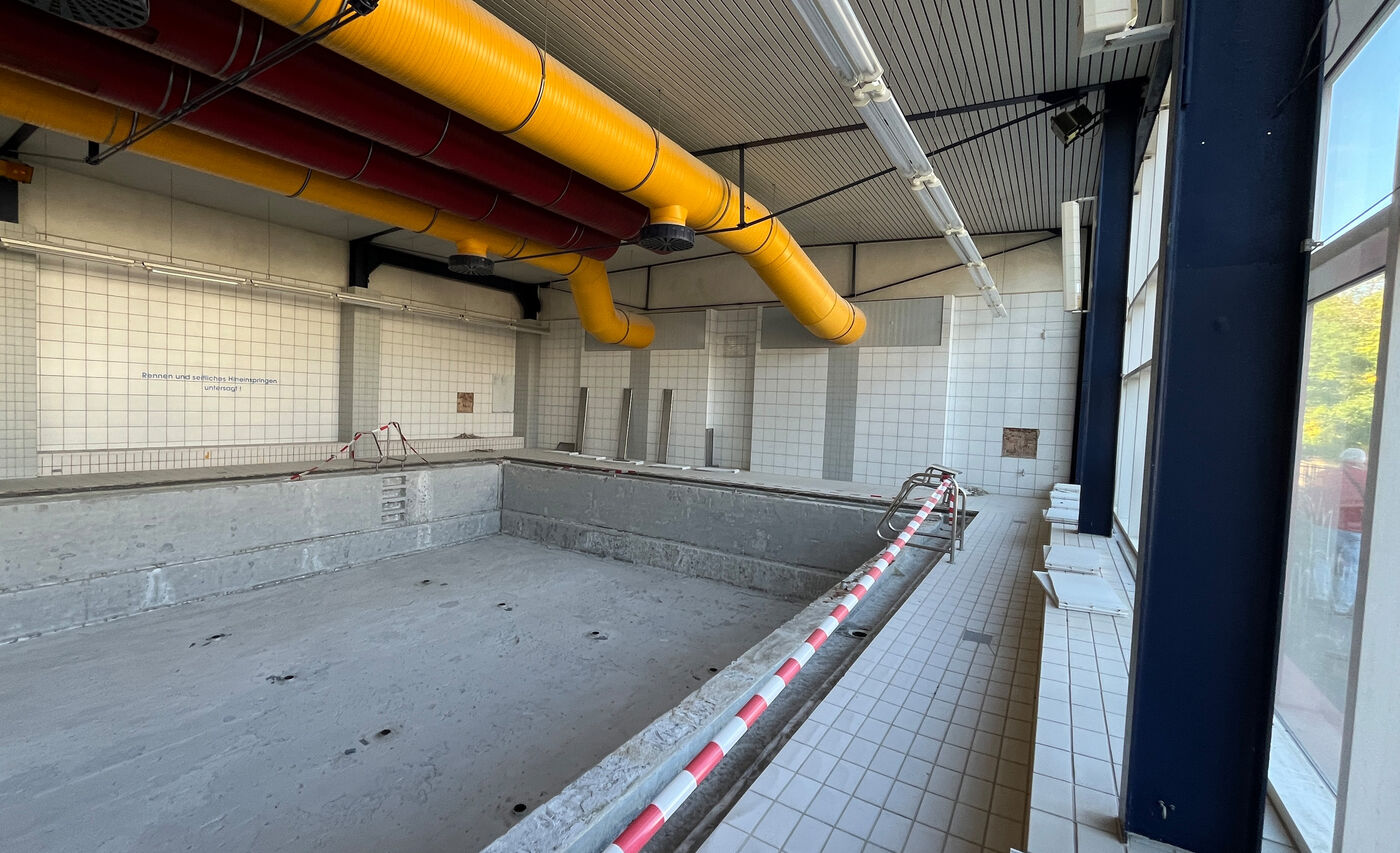 Die Nordwand der Halle wird versetzt, so dass auch für eine fünfte Schwimmbahn Platz ist. Für den Eingangsbereich kommt ein Anbau. Der barrierefreie Zugang wird über eine Liftanlage zum Kassenbereich und einen Aufzug im Inneren der Schwimmhalle gewährleistet. Vom neuen Foyer haben Badegäste gleich Blick in die Schwimmhalle. Der Saunabereich befindet sich im Keller. Er wird auch barrierefrei zugänglich sein.